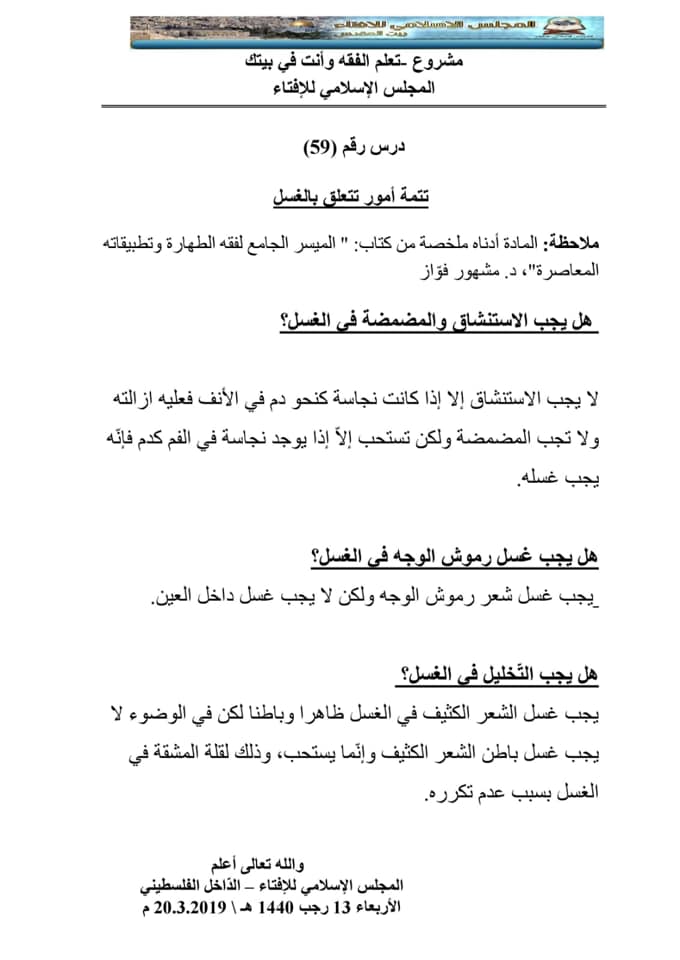 - درس (59) "تتمة أمور تتعلق بالغسل"